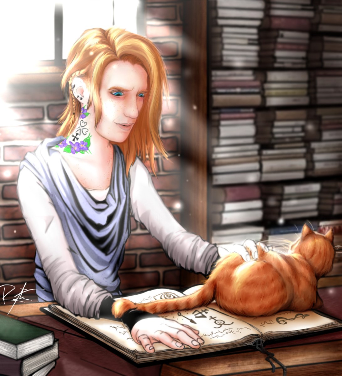 down, curling into a loaf-like ball on the open pages of the book.“Ah! The lesser known butt-reading technique! Truly you are a lady of