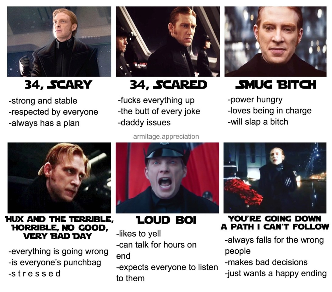 Image | April 8, 2018December 12, 2018 | techiehux armitageappreciation: Tag yourself ♥️ I’m a mix of 34, Scared and Hux and the terrible, horrible, no good, very bad day Share this: Click to share on X (Opens in new window) X Click to share on Facebook (Opens in new window) Facebook Like Loading... Related